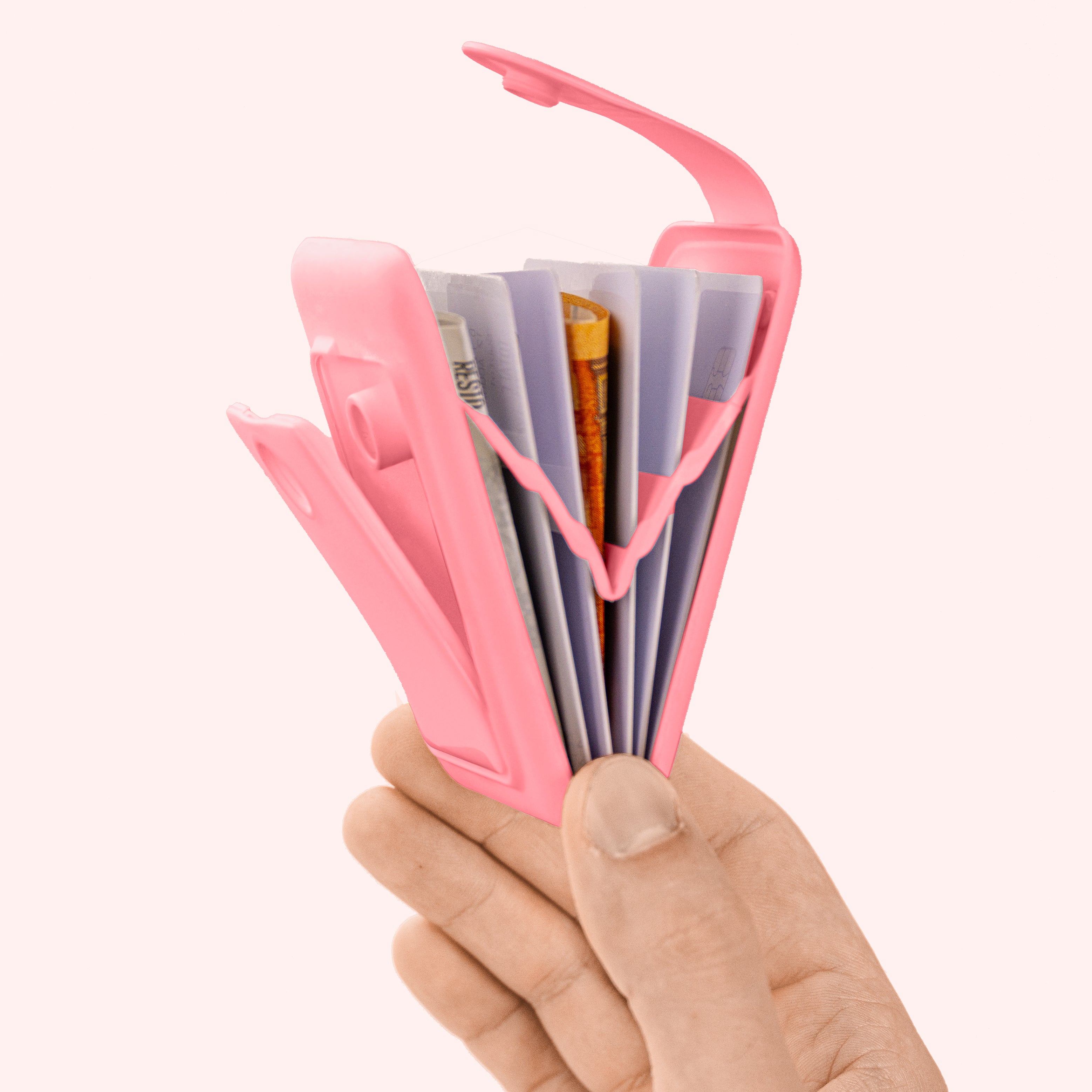 Das Bazza fasst genauso viele Karten und sogar ein bisschen Bargeld. Ich hatte erwartet, dass es ganz schließt, die Seiten sind allerdings offen, mehr wie bei einem money clip. Fühlt sich aber trotzdem sicher und solide an in der Hosentasche. Dazu sieht es noch gut aus. Bin sehr zufrieden!